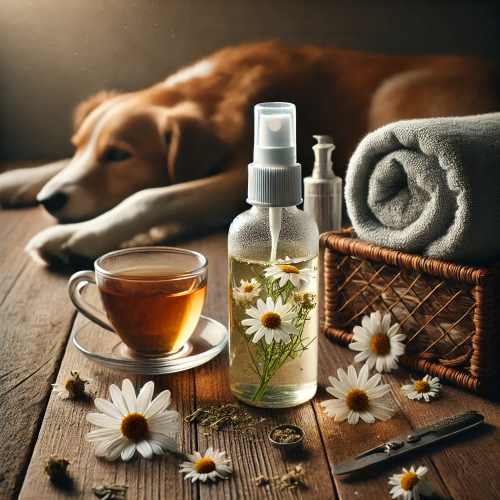 La camomille est réputée pour ses vertus anti-inflammatoires et relaxantes. Sous forme de spray, elle peut aider à apaiser les douleurs articulaires et détendre le chien.